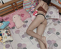 침대위 멋진 하체의 처자