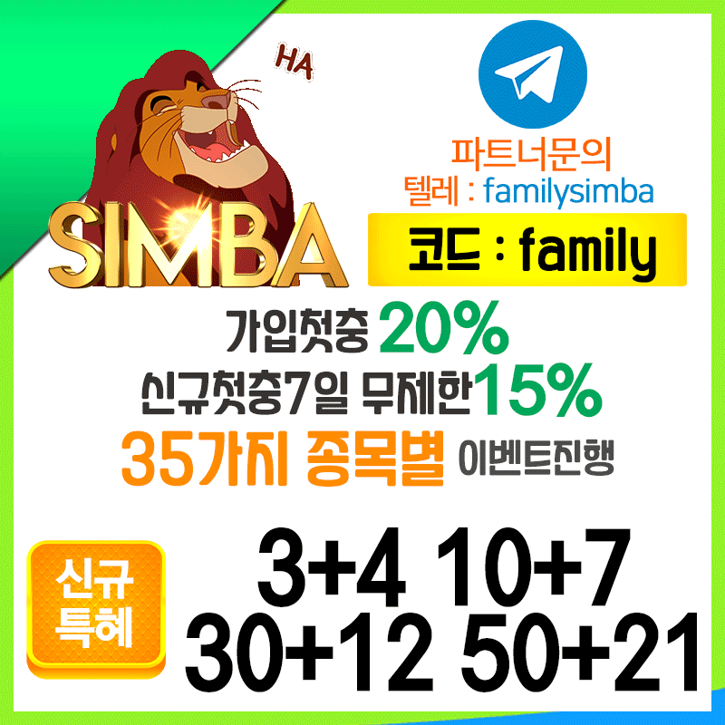 【심바】⭐ 불법 사설이 아닙니다! 마카오 정식 스포츠회사 No.1실시간,스포츠배팅 전문가를 위한 최고의 주소모두사이트!심바사이트 150여곳 이상의 검증업체등록!다수의 주소모두 계열사보유, 유럽식 다기준점/축구 라이브벳!신규첫충 20% 신규첫충 7일 무제한 15% 돌발 15%신규특혜 3+4 10+7 30+12 50+21그외 35가지 종목별…