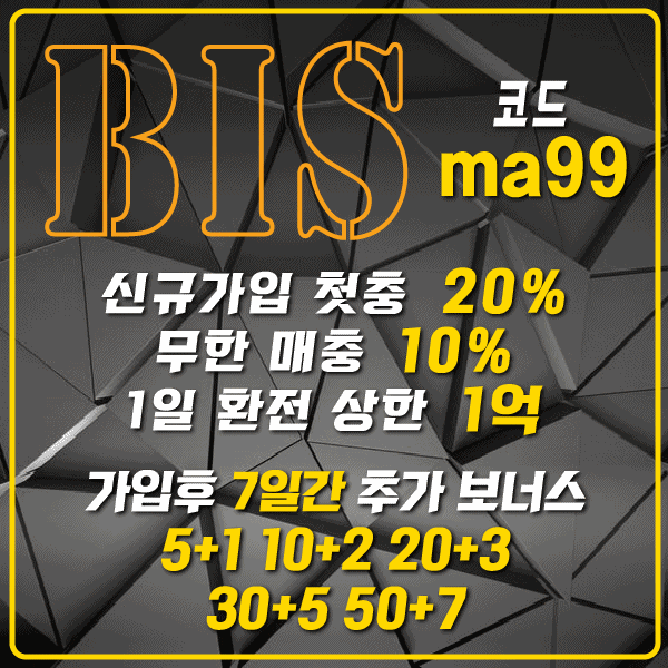 【BIS】해외공식 라이센스 보유업체국내 최다 스포츠종목 등록국내 최다 실시간라이브 Inplay단폴더 Inplay 최대배팅 3.000만원 가능업계 최대환전 하루 1억까지다양한 이벤트 30여가지 진행가입첫충 20% 무한매충 10% 돌발 15%( 5+1 10+2 30+5 50+7 )가입코드 : ma99 【BIS】바로가기 &n…