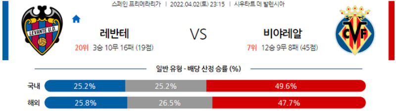 [라리가] 4월 2일 레반테 vs 비야레알
