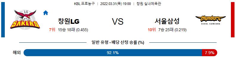 외국인 선수가 주소모두 부상으로 정상 컨디션이 아니며 출전 가능성 자체가 불투명한 서울 삼성 이다. 제공권 싸움에서 창원LG가 우위를 점령할 것이다. 창원LG 승리 가능성을 추천 한다.