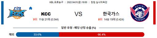 PO 진출이 좌절 된 이후 기회를 받은 KCC의 식스맨들이 그 기회에 화답하는 경기력으로 팀의 2연승에 힘을 보탰지만 PO진출을 위한 강한 동기로 무장 되어 있는 한국가스공사 라는 것에 베팅 포커스를 맞추야 한다. 한국가스공사 승리 가능성을 추천 한다. 핸디캡 승부에서도 한국가스공사의 손을 들어주고 싶은 타이밍에 걸린 경기다. 한국가스공사는 팀이 그토록 원하던 두경민의 컨디션이 올라오기 시작했다.