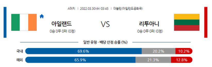 열람중 【A매치친선】 3월 30일 아일랜드 vs 리투아니아 2022.03.30 260