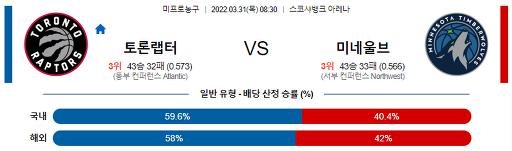 3월 31일 08:30 NBA분석 토론토 : 미네소타