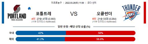 3월 29일 NBA분석 포틀랜드 : 오클라호마
