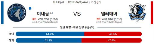 3월 26일 09:00 NBA분석 미네소타 : 댈러스