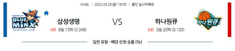 [WKBL] 3월 25일 삼성생명 vs 하나원큐