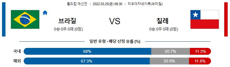 브라질이 승리할 가능성이 높다. 본선을 대비하고, 피파 랭킹을 위해서 승리를 가져오려 할 것이다. 칠레는 전체적으로 세대교체에 실패한 모습이라, 에너지 레벨에서 많이 떨어져 있다. 브라질의 다득점 승리도 노려볼 만 하다.