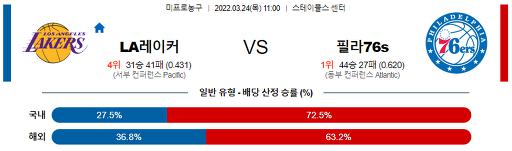 3월 24일 11:00 NBA분석 LA레이커스 : 필라델피아