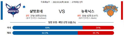 열람중 3월 24일 08:00 NBA분석 샬럿 : 뉴욕 2022.03.23 256