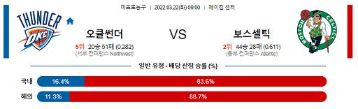 3월 22일 NBA분석 오클라호마시티 : 보스턴