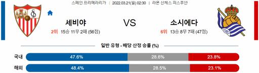 프리메라리가 3월 21일 02:30 세비야 FC : 레알 소시에다드