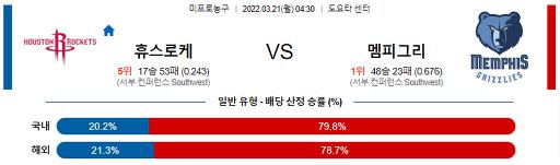 3월 21일 04:30 NBA분석 휴스턴 : 멤피스