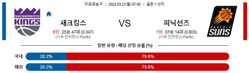 3월 21일 07:00 NBA분석 새크라멘토 : 피닉스