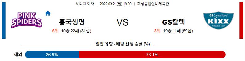 [KOVO 여자배구] 3월 21일 인천 흥국생명 핑크 스파이더스 vs GS 칼텍스