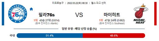 3월 22일 NBA분석 필라델피아 : 마이애미