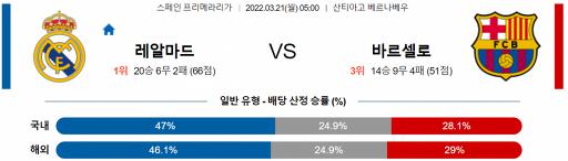 프리메라리가 3월 21일 05:00 레알 마드리드 : FC 바르셀로나