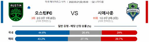 메이저리그사커 3월 21일 05:30 오스틴 FC : 시애틀 사운더스 FC