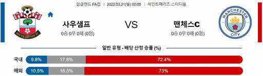 잉글랜드 FA컵 3월 21일 00:00 사우샘프턴 : 맨체스터 시티