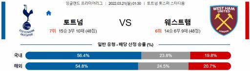 프리미어리그 3월 21일 01:30 토트넘 홋스퍼 : 웨스트햄