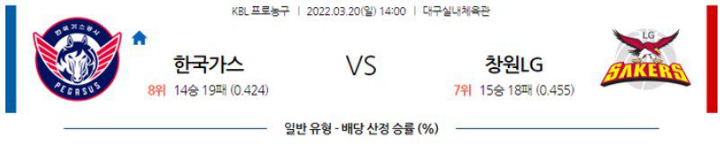 6위 한국가스공사와 7위 창원LG의 정규시즌 최종전 이다. 창원LG가 승리를 기록하게 된다면 두 팀의 순위가 바뀌게 되는 중요한 경기가 되는 만큼 수비 집증력이 올라가는 경기가 될것이다.