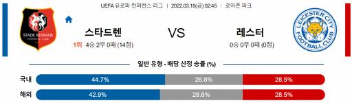 UEFA 유로파리그 3월 18일 02:45 스타드 렌 FC : 레스터 시티