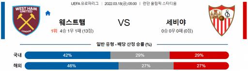 UEFA 유로파리그 3월 18일 05:00 웨스트햄 : 세비야 FC