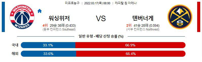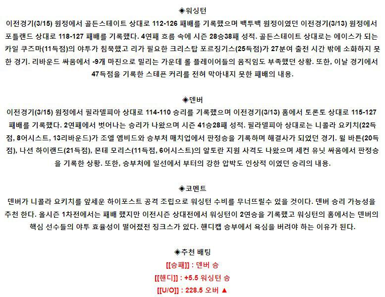 【NBA】 3월17일 워싱턴 vs 덴버