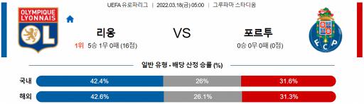 UEFA 유로파리그 3월 18일 05:00 올랭피크 리옹 : FC 포르투