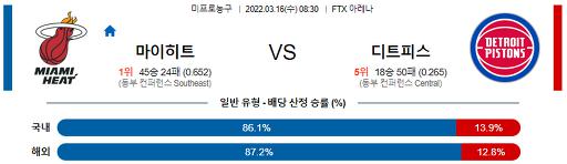 3월 16일 08:30 NBA분석 마이애미 : 디트로이트