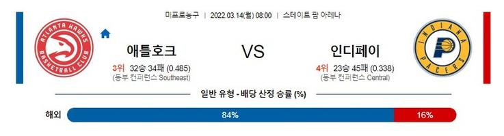 [NBA] 3월 14일 애틀란타 vs 인디애나