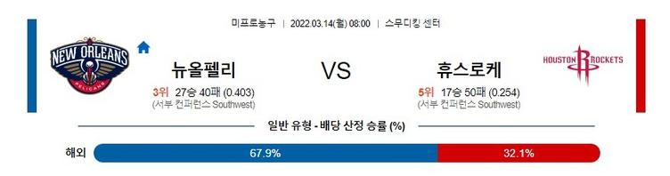[NBA] 3월 14일 뉴올리언스 vs 휴스턴