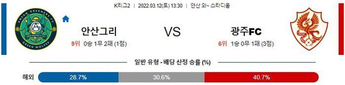 [K리그2] 3월 12일 안산 그리너스 vs 광주