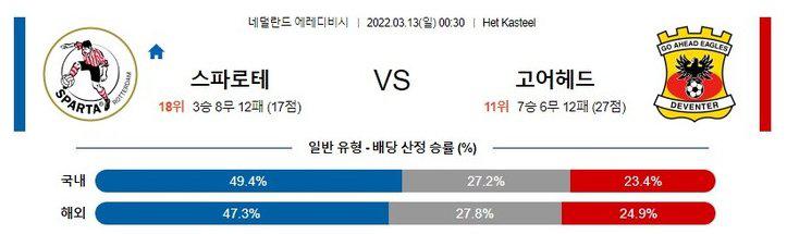 ​[에레디비시] 3월 13일 스파르타 vs 고 어헤드 이글스