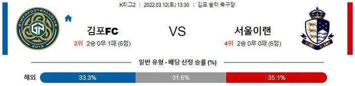 [K리그2] 3월 12일 김포 vs 서울 이랜드