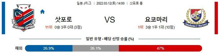 【J리그】 3월 12일 콘사도레 삿포로 vs 요코하마 마리노스