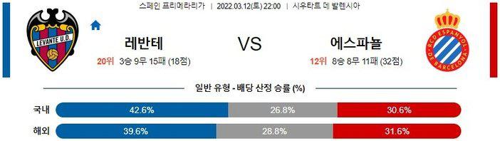 [라리가] 3월 12일 레반테 UD vs RCD 에스파뇰