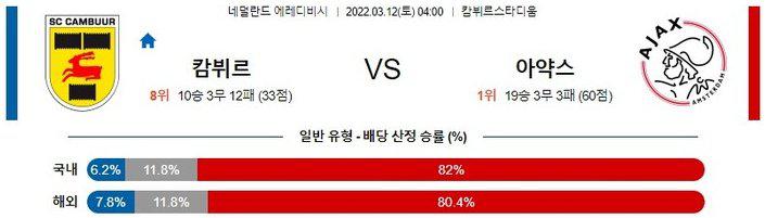 ​[에레디비시] 3월 12일 SC 캄뷔르 vs AFC 아약스