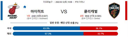 3월 12일 10:00 NBA분석 마이애미 : 클리블랜드