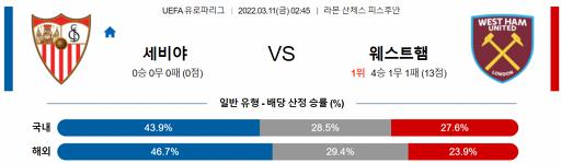 UEFA 유로파리그 3월 11일 02:45 세비야 FC : 웨스트햄