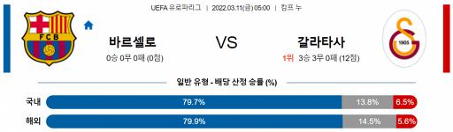 UEFA 유로파리그 3월 11일 05:00 FC 바르셀로나 : 갈라타사라이