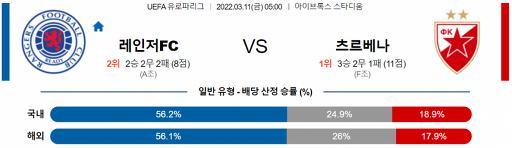 UEFA 유로파리그 3월 11일 05:00 레인저스 FC : 츠르베나 즈베즈다