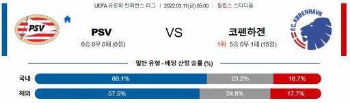 UEFA 유로파리그 3월 11일 05:00 PSV 에인트호번 : FC 코펜하겐