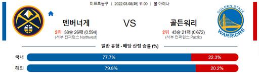3월 8일 11:00 NBA분석 덴버 : 골든스테이트