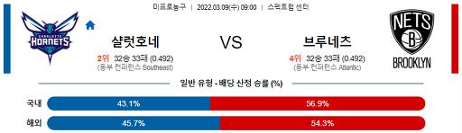 3월 9일 09:00 NBA분석 샬럿 : 브루클린