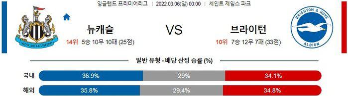 【프리미어리그】 3월 6일 뉴캐슬 vs 브라이튼