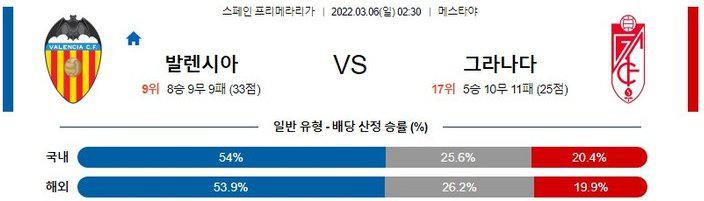 【프리메라리가】 3월 6일 발렌시아 vs 그라나다