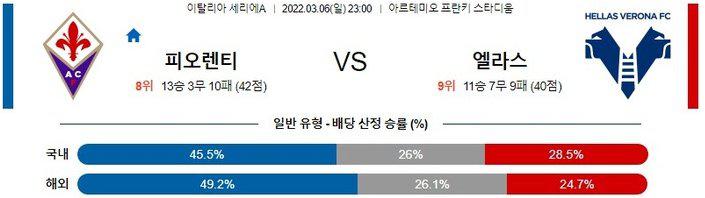 【세리에A】 3월 6일 피오렌티나 vs 엘라스