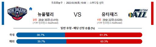 3월 5일 NBA분석 뉴올리언스 : 유타