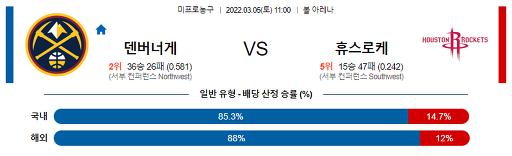 열람중 3월 5일 NBA분석 덴버 : 휴스턴 2022.03.04 311